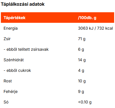 magas rost- és telítetlen zsírtartalom